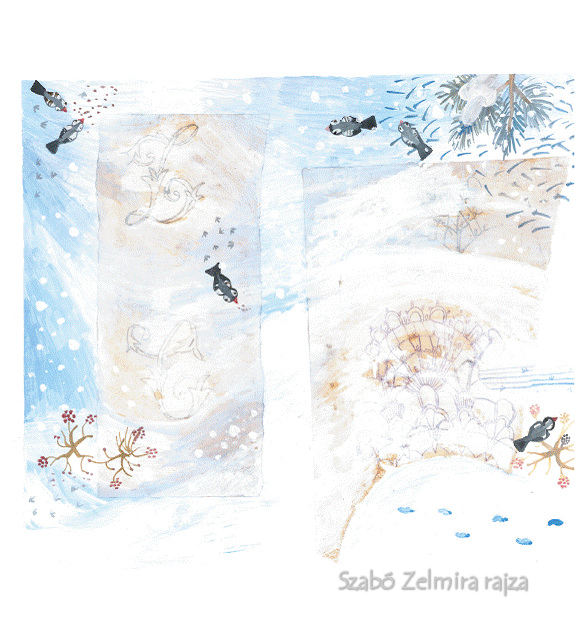 Telt, múlt az idő, s ahogy ott üldögélt, először egy fenyőrengetegbe zarándokló hegyi-juhar-remete havazta be kifakult leveleivel, míg aztán egy reggelre az igazi hópelyhek is belepték egészen. Arra ébredt, hogy odafönn a többiek jeges sziklákat csiszolnak simára, hogy ne lehessen átmászni rajtuk, csak megkerülni lehessen őket a mellékvölgy irányában.