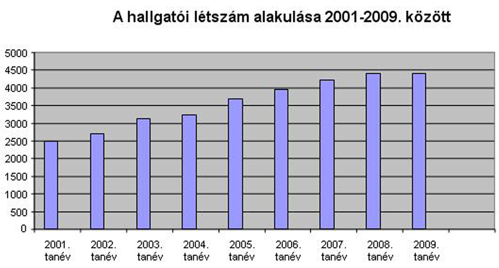 A demográfiai hullámvölgy és a bizonyos szakok iránti csökkenő érdeklődés ellenére dinamikusan növekedett a felvett hallgatók létszáma is, ami számos okra vezethető vissza. Ilyen ok például a képzési kínálat bővülése, az Állam- és Jogtudományi Karon a levelező munkarend felfutása, a Tanítóképző Főiskolai Kar esetében a székhelyen kívüli képzés sikeres működtetése, illetve az a tény, hogy a Bölcsészettudományi Karon sikerült megtartani a korábbi osztatlan képzésben már kialakult szakstruktúrát, és a bolognai rendszerre történő áttéréskor bővültek a képzési lehetőségeink.